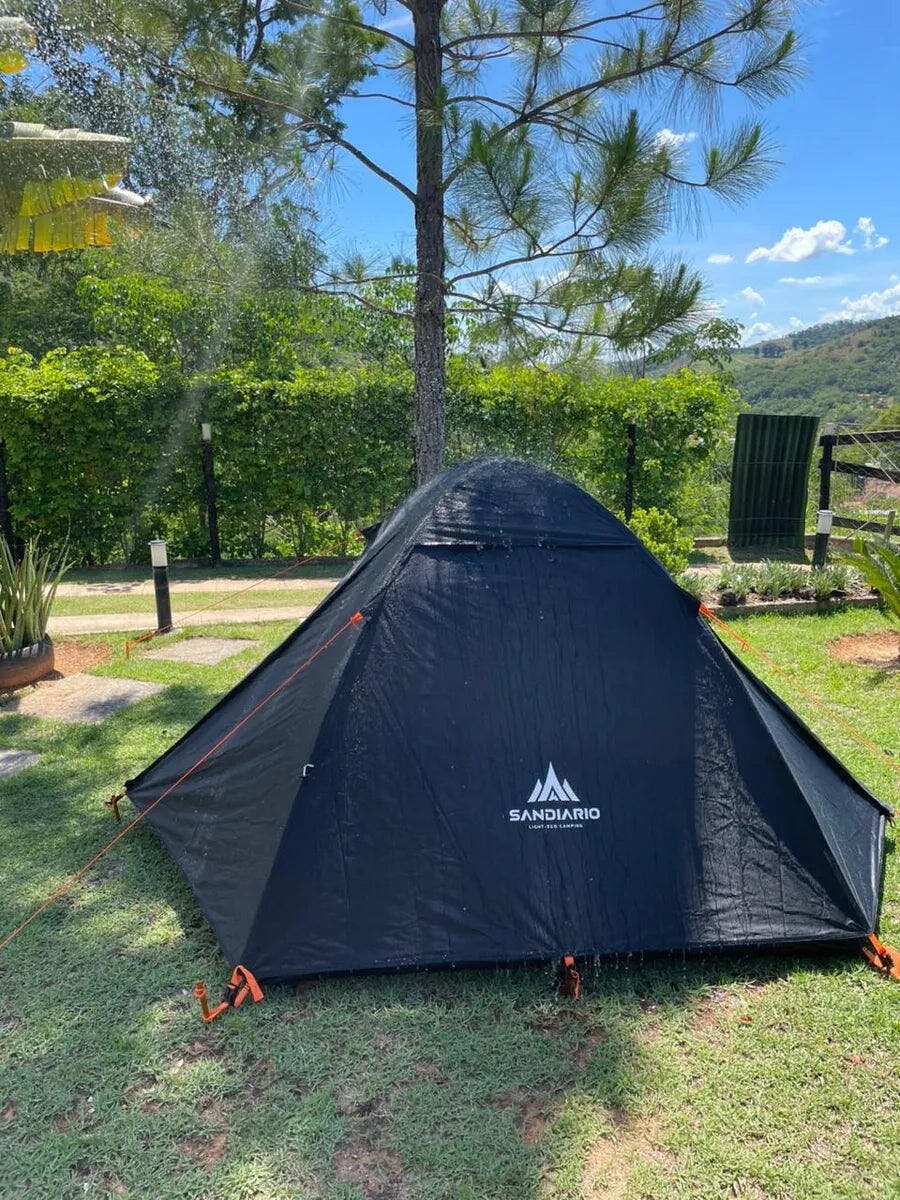 Há espaço suficiente na tenda para duas pessoas, podendo levar consigo mais uma criança ou um animal de estimação.